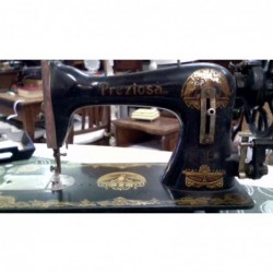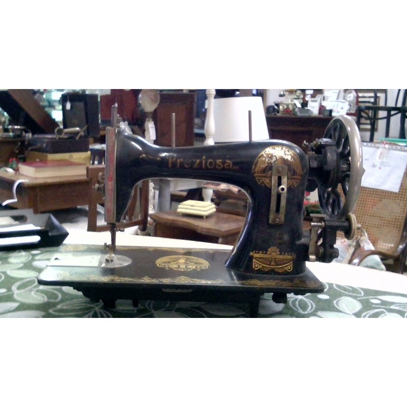 Antica macchina da cucire , marca Preziosa, elegantemente decorata. Ottimo pezzo d’arredamento.vetrinistica Epoca: primi 900 Marca: Preziosa Materiali: metallo Dim (cm): L 42 x H 30 x P 188 Condizioni: la macchina non è funzionante. riporta segni del tempo e dell'utilizzo. Visione e ritiro a mano in negozio Possibile spedizione ; chiamare in negozio